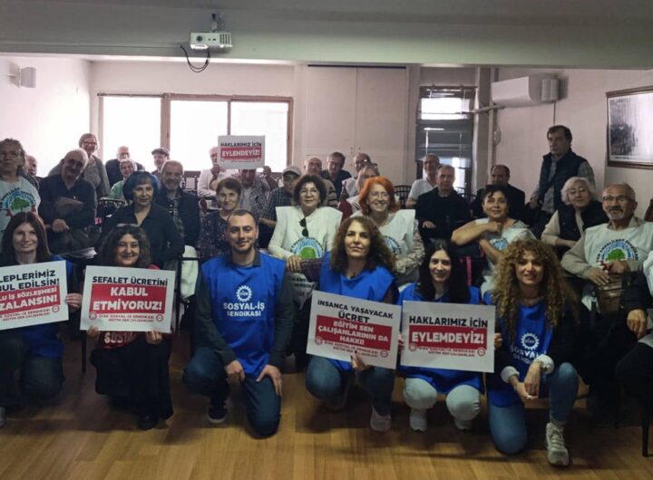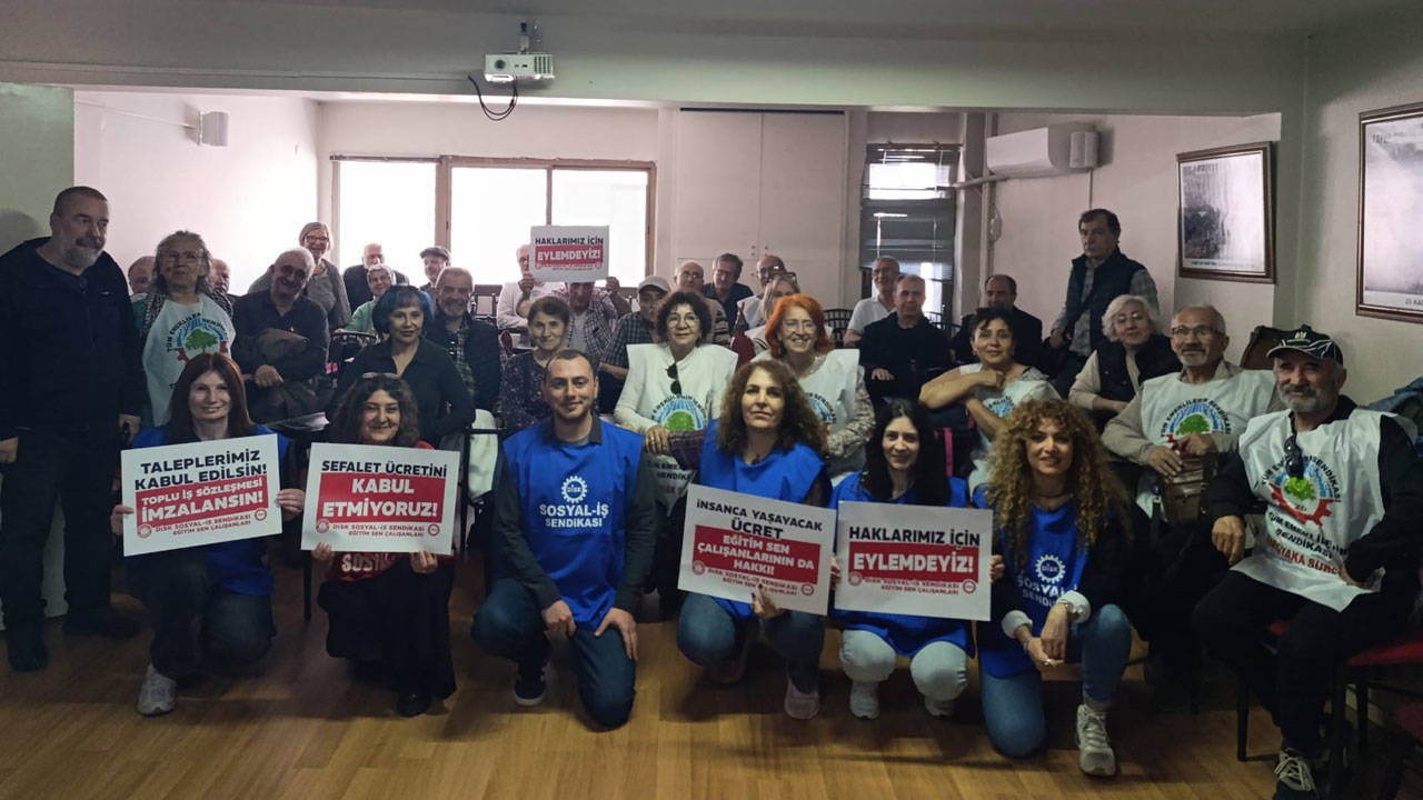 Eğitim-Sen bünyesinde çalışan işçiler, DİSK’e bağlı Sosyal-İş ile Eğitim-Sen arasında süregelen 8. dönem toplu iş sözleşmesi görüşmelerinin...