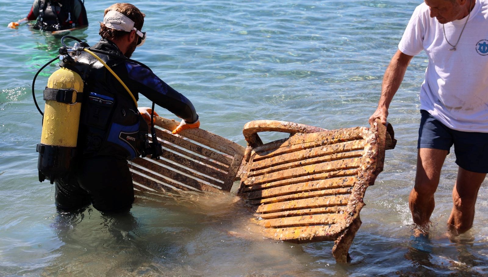 Konyaaltı Varyant Ekdağ 1 No’lu Plajı önünde dalgıçlar su altından plastik, cam ve pet şişeler ile metal parçalar çıkardı. Bu sırada gönüllüler de kıyıdaki çöpleri topladı.